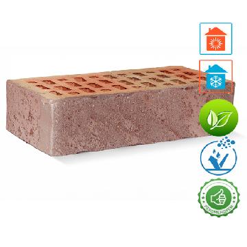 Исключительный глянцевый, красно-коричневый пестрый цвет и рельефная лицевая поверхность. Производится из смеси красножгущейся глины и песка с торкретированием лицевой поверхности натуральными минеральными компонентами по технологии редукционного-flash обжига. Отличительной особенностью данного вида кирпича является рельефная фаска.